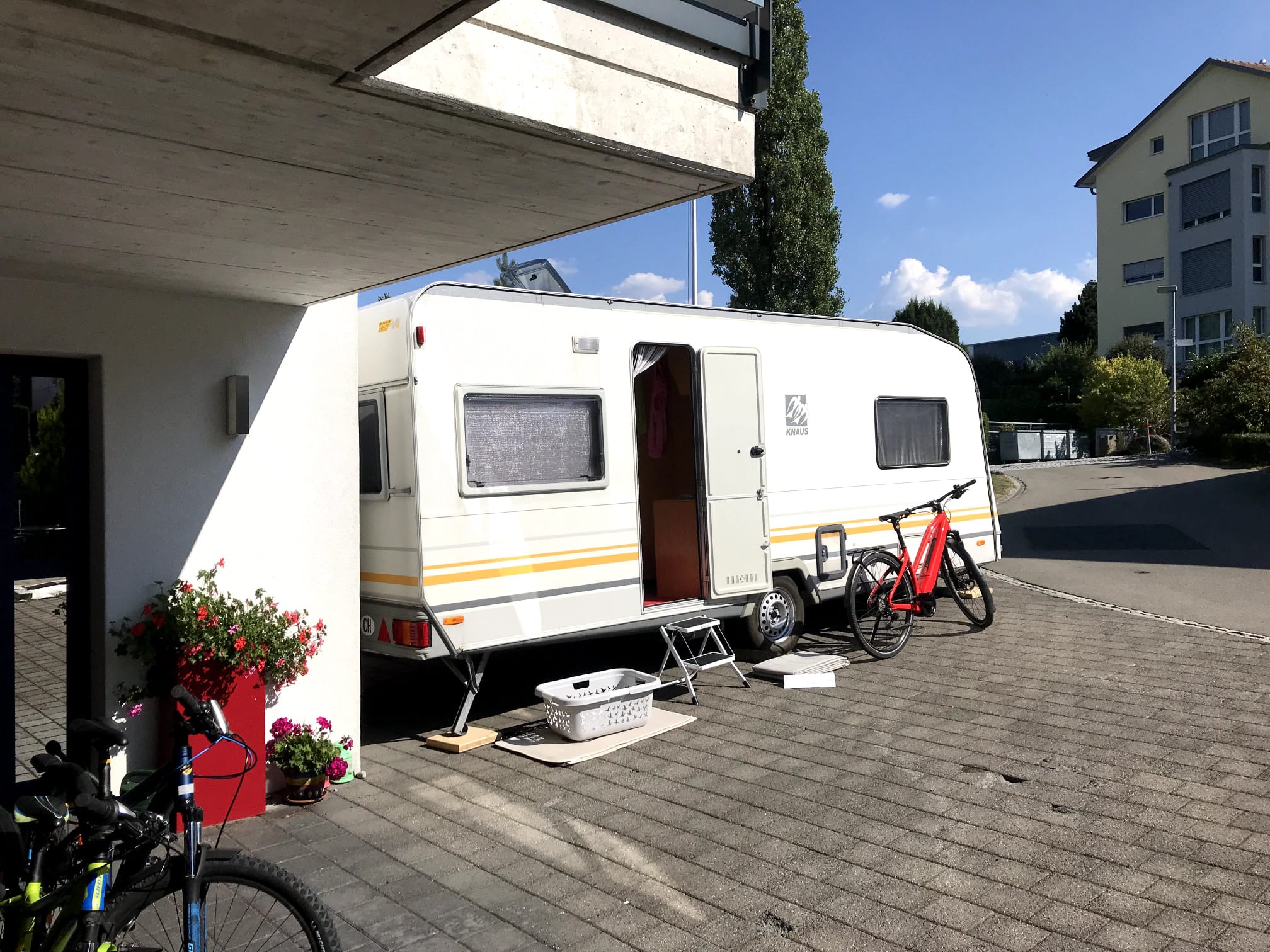 Unser Wohnwagen bietet jungen Familien den idealen Rückzugsort für unvergessliche Abenteuer. Mit einer grosszügigen Länge von 7,5 Metern und einer durchdachten Innenausstattung, die komplett in Eigenregie gestaltet wurde, finden Sie hier den perfekten Mix aus Komfort und Funktionalität. Die geräumigen Schlafbereiche und die voll ausgestattete Küche sorgen dafür, dass Sie sich auch unterwegs wie zu Hause fühlen. Zudem bietet der Wohnwagen genügend Stauraum für all Ihre Reiseutensilien, sodass Sie bestens gerüstet sind für Ihre nächste Familienreise.